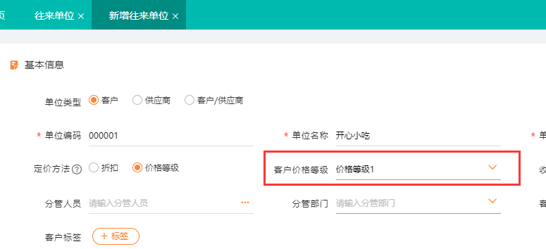 >>>然后到【往来单位】批量设置客户【等级价格】