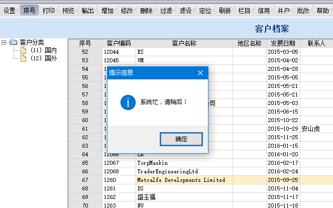 用友软件客户档案导出时候提示:系统忙,请稍后 ,一会又跳出无可导出数据?