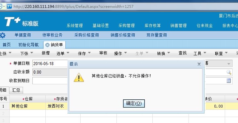 T+标准版做销货单时显示:其他出库单锁盘,不能操作?