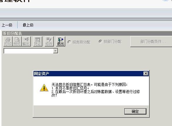 T6固定资产提示:无法显示折旧信息汇总表。