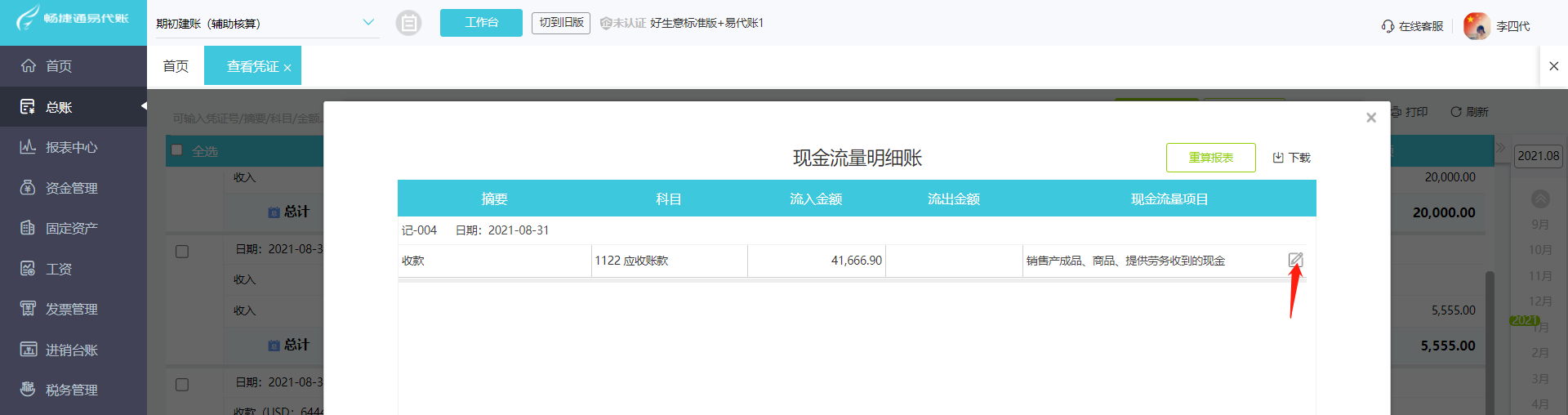 如何查看某凭证的现金流量明细并修改: