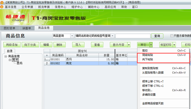 用友t1商贸宝批发零售普及版12.6里面的商品如何从一个类转到另一个类?