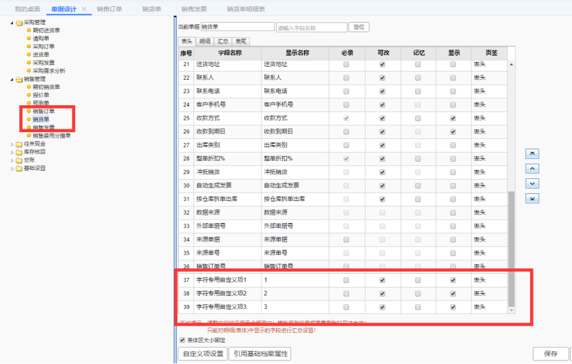 1. 自定义项设置中,要选择公用自定义项,适用单据选择销售订单,销货单和销售发票。