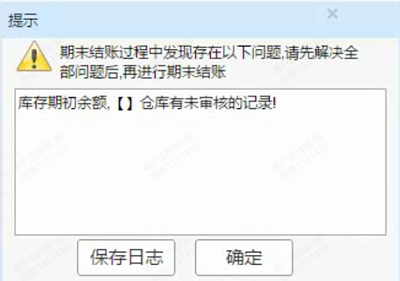T+业务结账时提示:库存期初余额,【】仓库有未审核的记录!