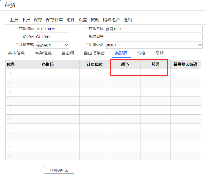 客户希望导入存货条形码可以按照自由项导入条形码。