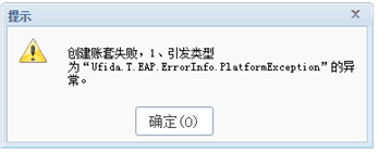 二、情况一:创建账套失败,1、引发类型为“Ufida.T.EAP.ErrorInfo.PlatformException”的异常。