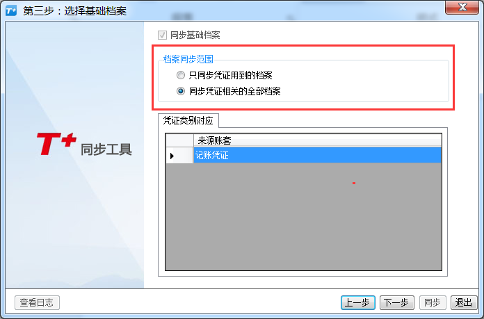 1.只同步凭证用到的档案,则会将凭证辅助核算用到的档案做同步;