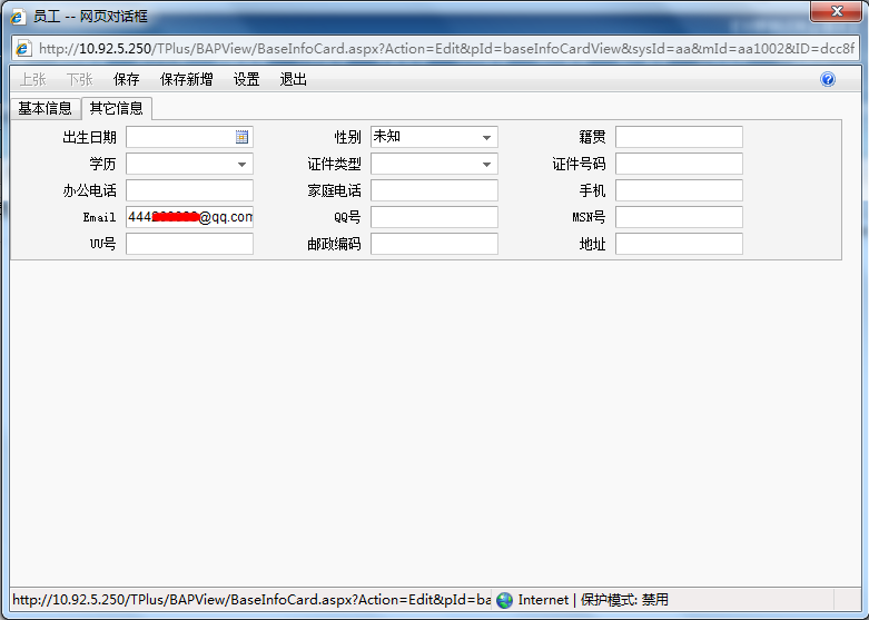 进入“基础设置”-“常用信息设置”-“员工”,点击“新增”增加员工档案,并在“其他信息”页签Email处添加员工邮箱地址,此邮箱用来接收单据审核邮件。