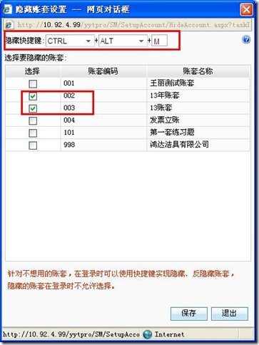 设置好后,重新登入,默认看不到隐藏的账套,同时按CTRL+ALT+M,隐藏账套显示出来,再按,又隐藏。