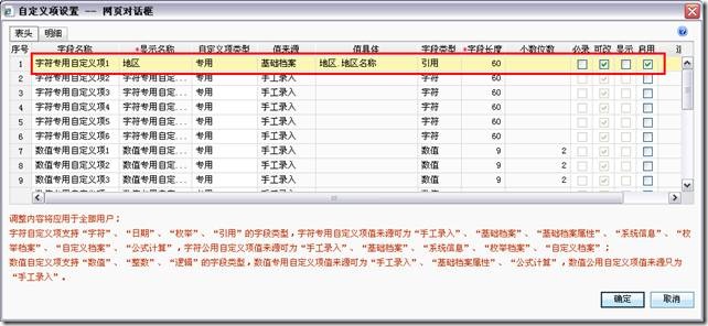 增加自定义项地区,“值来源”参照“基础档案”。