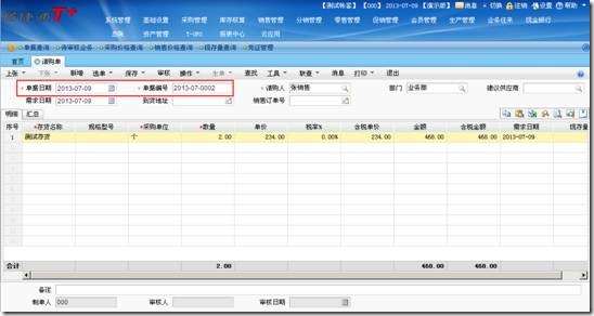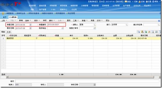 3、再填制一张请购单,单据日期为2013年7月份,如下: