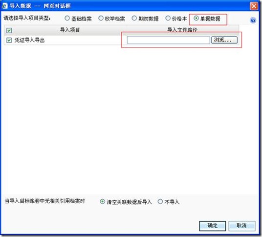 5、 登录到第二个没有录入凭证的账套。点击系统管理-数据导入导出工具-数据导入,同样选项单据数据下的凭证导入导出。点击浏览。选择之前下载的凭证数据