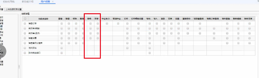用户权限销售管理单据没有审核和弃审勾选按钮