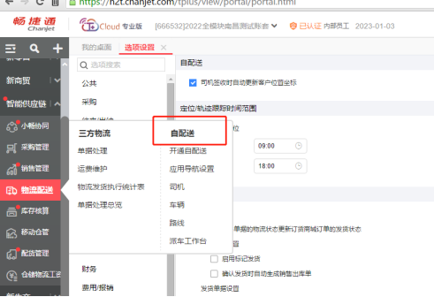 2、在【选项设置->物流配送->自配送】选项反启用,保存。