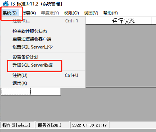 5、工具处理后用admin登陆系统管理,点击【系统】【升级SQL server数据】。