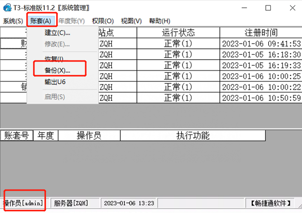 3、用admin登录系统管理,点击【账套】【备份】将数据做好备份。