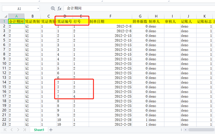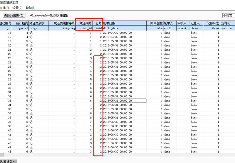 凭证”行号“相同导致软件中查询不到凭证,行号应该是不一样的,有几行分录行号就该从1开始,像123...等顺延往下输。像图中红框的显示就是错误的,因为行号相同会导致凭证在软件中查询不到。