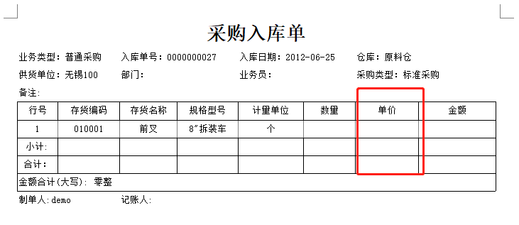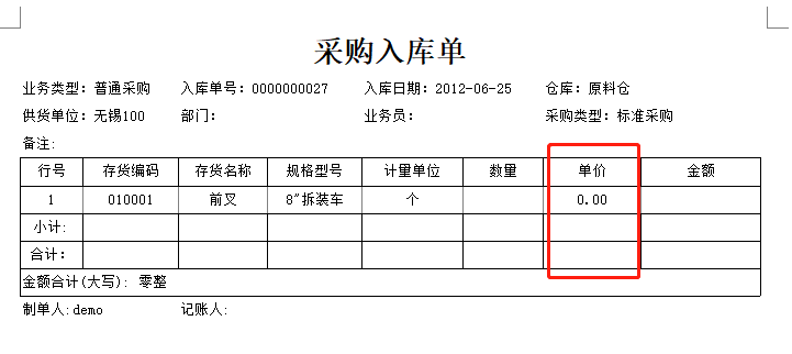 用友T6采购入库单新打印单价为零时如何让它显示为0