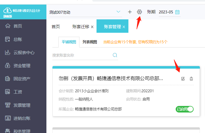 点击小齿轮进入账套管理,点击编辑,修改账套名称后点击保存。