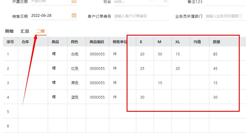2.勾选以上选项后,保存设置,须按"F5"键刷新页面或重新登录才会生效,生效后,在新增单据时,可通过二维模式填写对应数量,查看总计数。