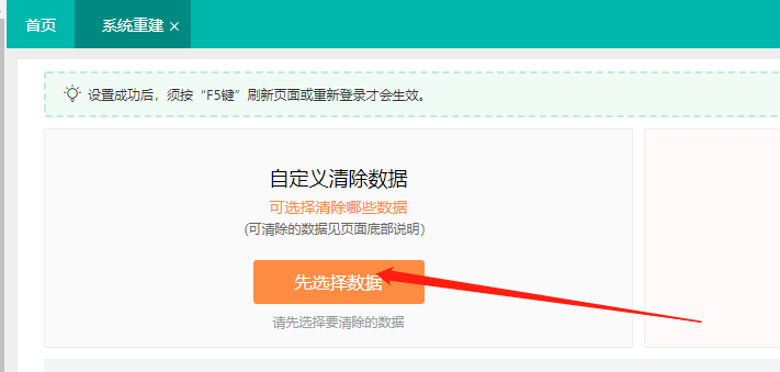 1、进入【系统管理】-【系统重建】,点击【自定义清除数据】,勾选需要清除的数据。