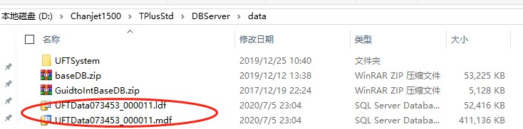 把分离的数据库文件复制到 D 盘,例如:D:\Chanjet\TPlusStd\DBServer\data