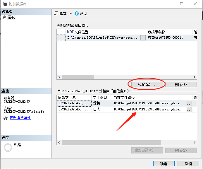 在弹出的附加窗口中,点击添加,选择移动后的文件,然后确定。