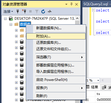 在 sql server 中选中要移动的数据,右键--->任务--->分离。