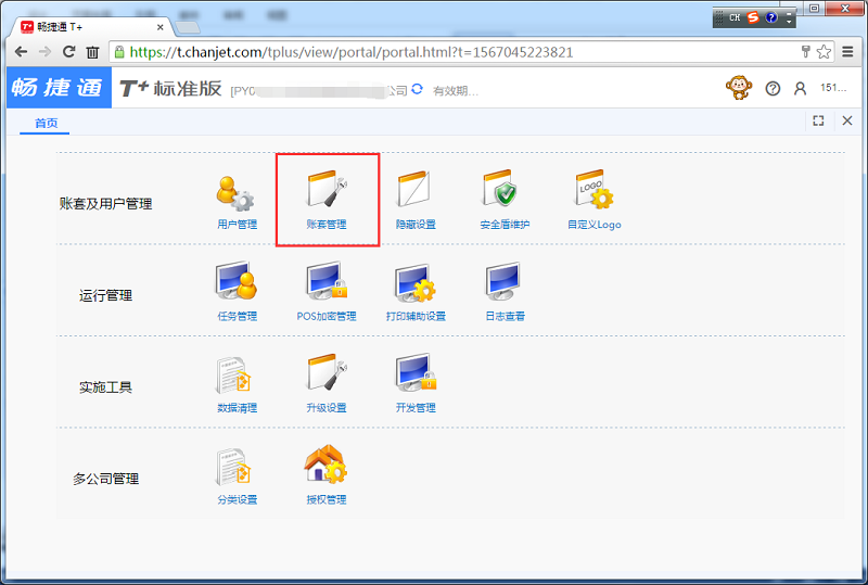 2、进入企业管理员界面之后,点击【账套管理】。