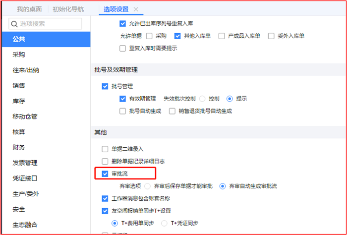 1、在【系统管理】-【选项设置】中启用审批流功能。