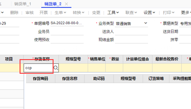 销货单上按助记码搜索这两种字样的存货,带不出来