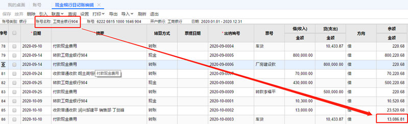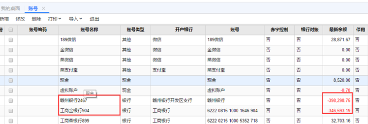 2.增加一张收入单320引入现金银行日记账,基础设置-账号中的最新余额是没有变化的,账号最新余额是异常无法更新取数。
