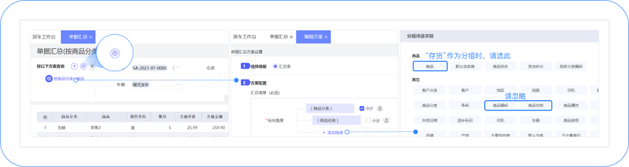 A、分组设置:汇总结果设置分组维度时,请注意下图。(注意:老客户升级上来,建议重新给客户建汇总方案,如下图):