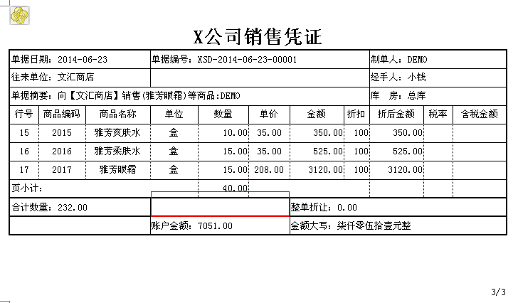 一些小店老板来X公司购买货品大都是大批量购买,打印购物凭证经常是需要打印多张纸才可以打印完。当销售单需要多张打印时能否实现在最后一页显示单据的总金额并在每页末尾显示出当页的一个金额小计?