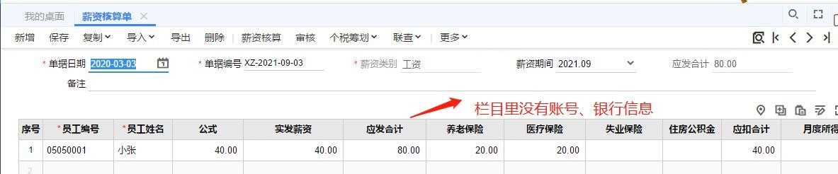 薪资核算单目前不能单据设计,是按薪资项目带入的,问题中说的账号和银行信息没在薪资核算单中显示,放在了薪资统计表中按员工分级时,可以出现银行账号等信息,也可以设置打印模板,打印工资条。