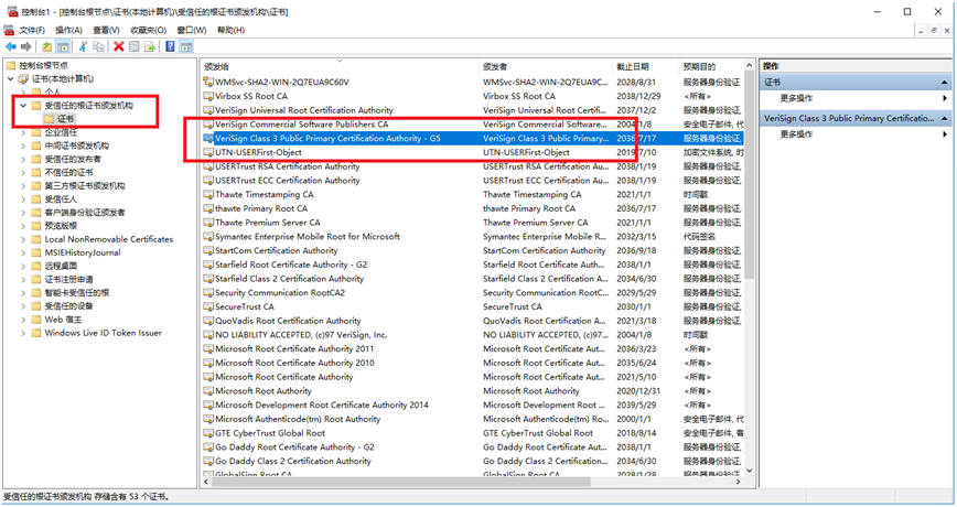 导入完,在右边可以看见verisign的证书。