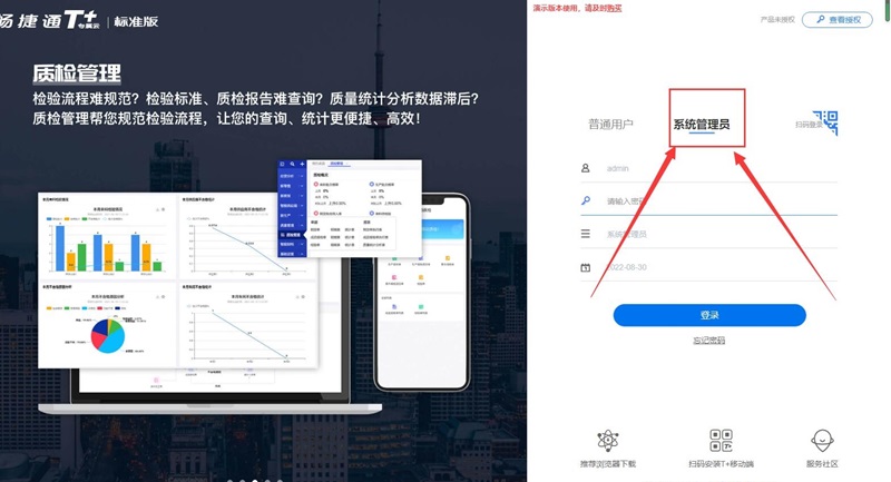 上面是T+的登录界面,不管是ONLINE云财税,还是普及版、标准版或者专属云,界面都差不多,我们点系统管理,然后账号admin,输入他的密码登录进去,这个密码一般都会服务人员都会告知客户的,只是不常用,去翻下之前记录过的