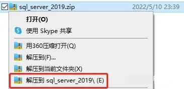 1)选中软件包,点击鼠标右键在弹出的选项中点击【解压到sql_server_2019】