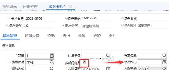 1、进入固定资产,点击新增资产,勾选多部门使用,如图下: