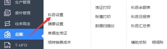3、设置折旧对方科目,点击总账-科目设置,然后按部门设置对应科目,如图下操作: