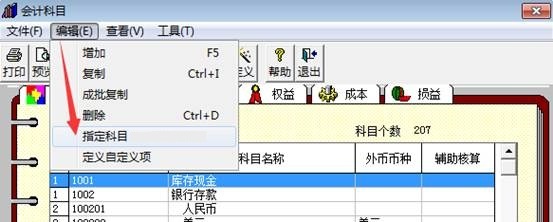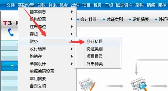 1、首先在指定现金流量科目,依次点击基础设置-财务-会计科目,如图下: