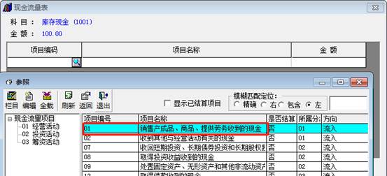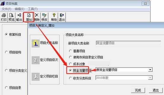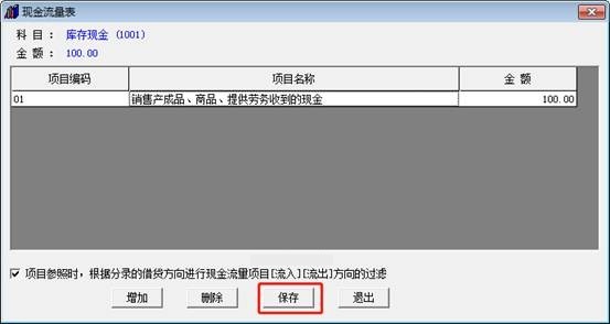 点击增加,选择现金流量项目-原现金流量项目并保存完成,如图下: