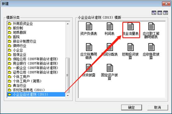 5、打开财务报表,点击文件-新建,选择相应会计准则下的现金流量表并确定,如图下操作: