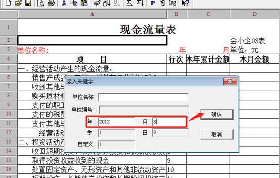 7、然后点击录入关键字的图标,录入要取数据的年度与月份即可,如图下操作: