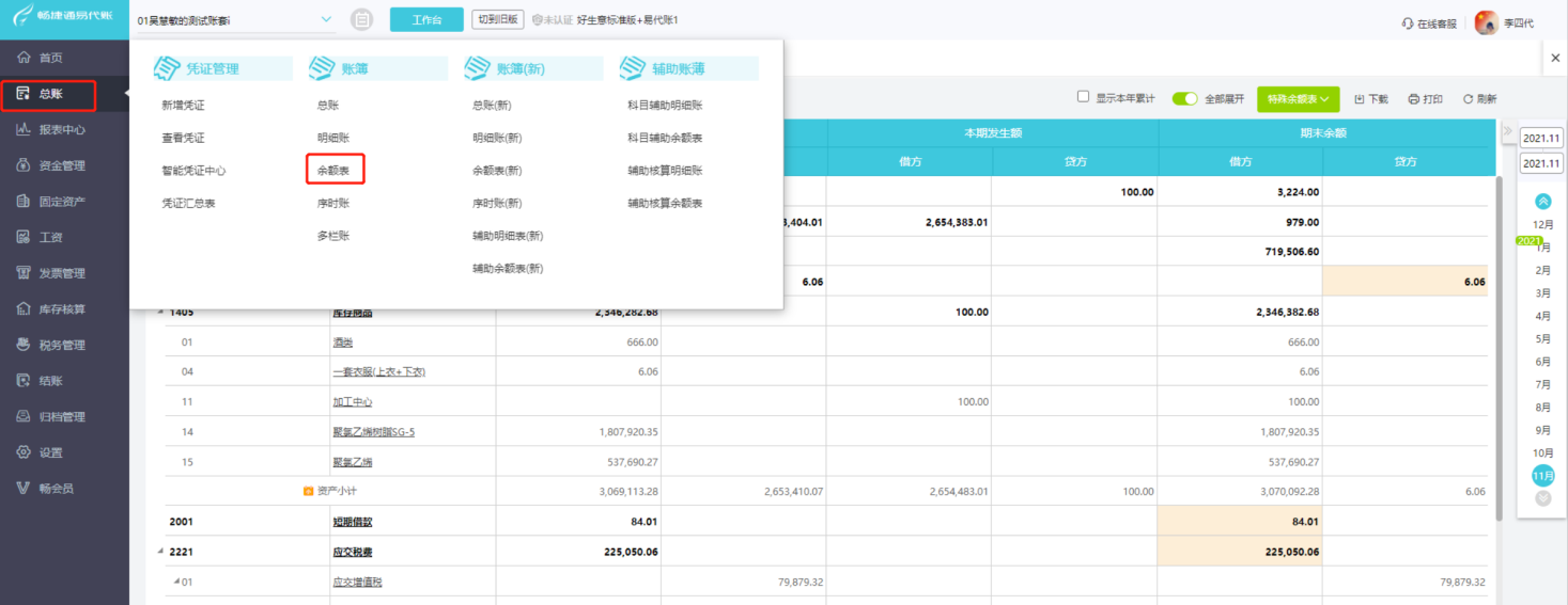 通常进入软件的余额表中查看当月的余额表时,只显示【本期发生额】,然后有时候我们也需要将本年累计也显示出来,因此易代账软件中设置了可以自由设置是否显示。
