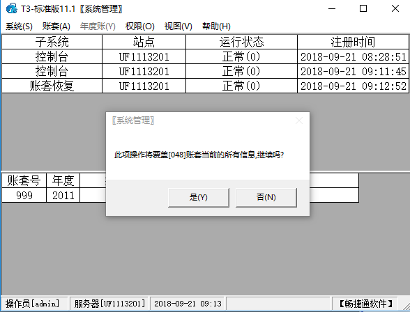 用友畅捷通T3如何不覆盖原账套恢复账套
