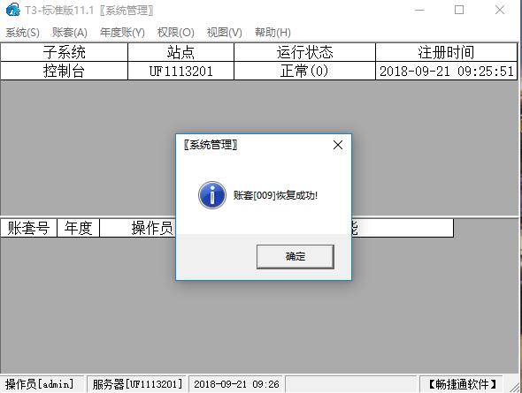 系统恢复账套009成功