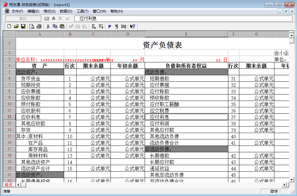 3、重新在财务报表模块中打开2013年小企业资产负债表;