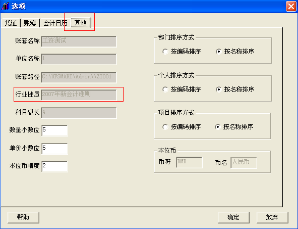 3. 从正常的可以生成excel的账套中拷贝一个相同行业性质的模块:“总账”-“设置”-“选项”-“其他”-查看“行业性质”,如:2007年新会计准则,那么可以去其他电脑的软件安装目录找到xxx:UFSMARTUFOufoModel2007年新会计准则拷贝到报错电脑中。