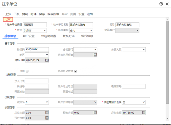 往来单位启用审核功能后,对往来单位信息进行变更时【开票地址】和【开票电话】置灰不可变更?